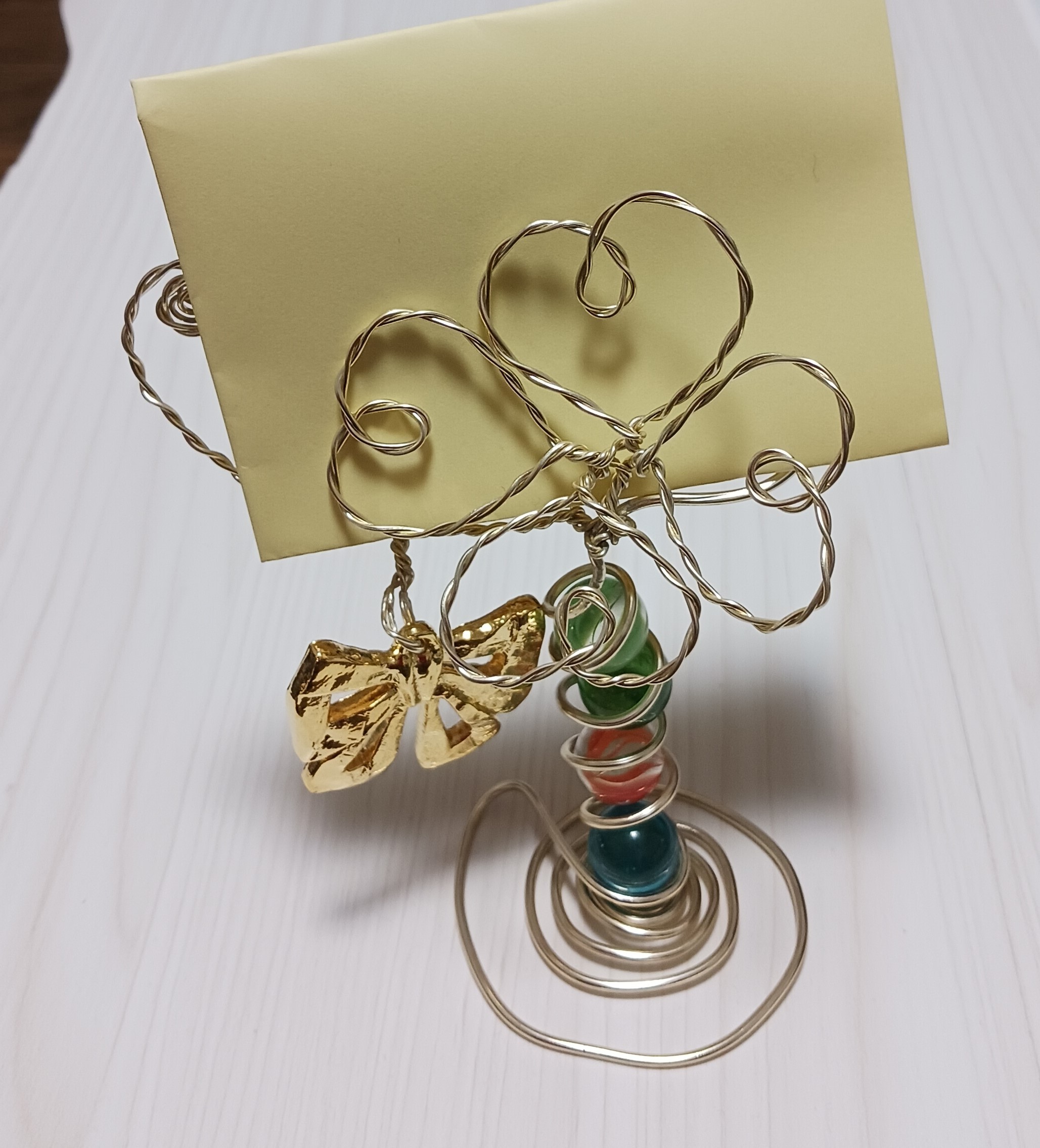 「ワイヤーアート体験 よつ葉のクローバー型メモスタンド作り」